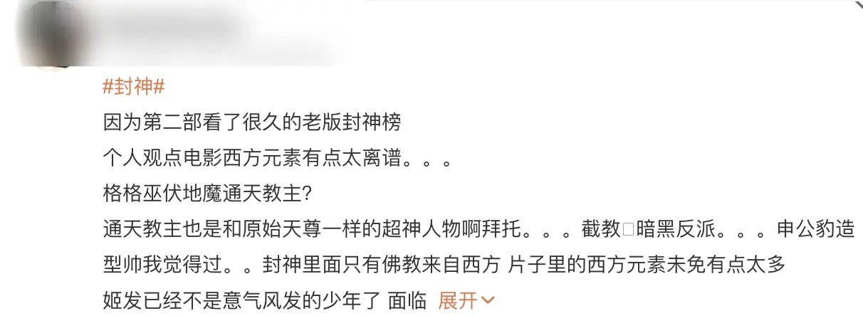 电影《封神第二部》彩蛋里的“通天教主”造型登上热搜!不少网友表示无法接受电影里“通天教主”的造型,还有网友辣评电影里的“通天教主”像格格巫、伏地魔等。